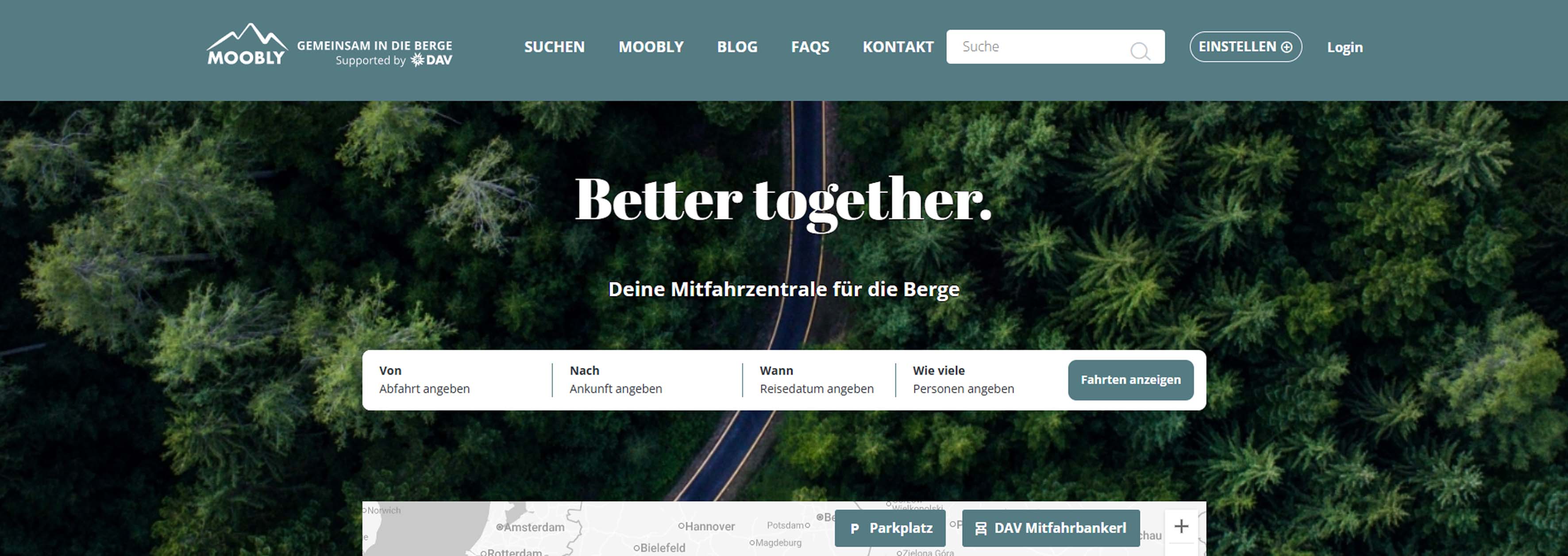 Klimaschutz - Der DAV unterstützt die Mobilitätsapp MOOBLY
