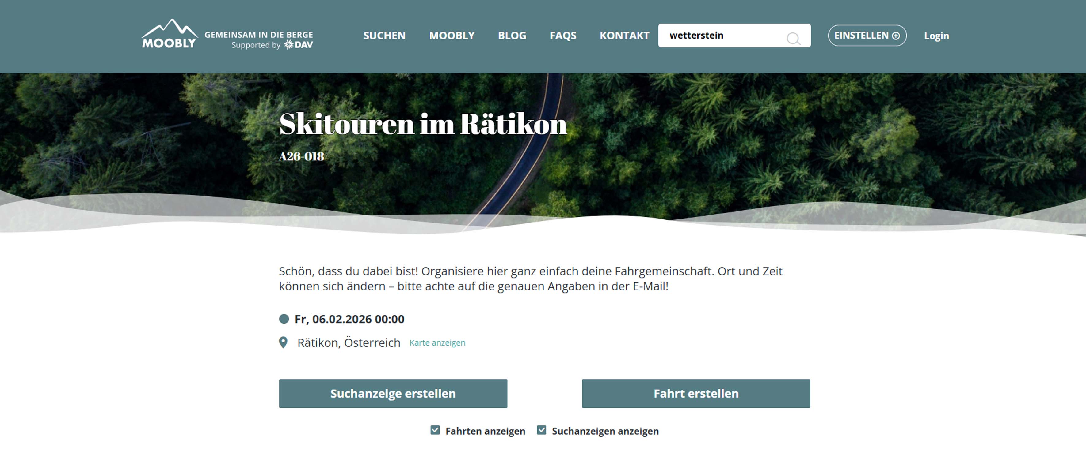 Zusammengefasst: Moobly erleichtert die umweltfreundliche und soziale Anreise zu Bergtouren durch digitale Vermittlung von Fahrgmeinschaften inklusive Kommunikation, Planung und Bewertung der Fahrten.