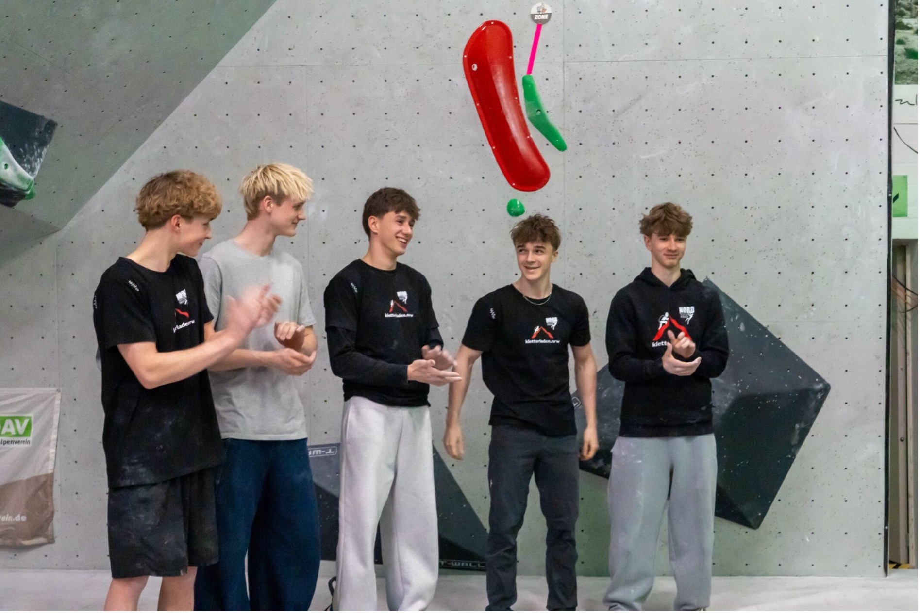 In der männlichen Kategorie gab es dafür eine volle Besetzung: Mattis, Oscar, Janne Eisenkolb und Jonas wurden noch durch Marlon Rodzis, Alessandro de Paolis und Sviatoslav Pashchuk verstärkt. Für Sviatoslav war es der erste DJC überhaupt. Der gebürtige Ukrainer startet seit 2024 für die Sektion Kiel und war am Wochenende zum ersten Mal für das norddeutsche Team auf nationaler Ebene im Einsatz. Nach starkem Auftakt mit zwei Flashs an den ersten beiden Bouldern reichte es am Ende für Platz 27. Für Alessandro ist es hingegen bereits die 5. Saison und der 21. DJC. Für ihn reichte es am Ende für Platz 19. Marlon landete nach einem Patzer an seinem ersten Boulder etwas unglücklich auf Platz 13, demonstrierte jedoch mit der Leistung an den anderen Bouldern sein Potenzial.