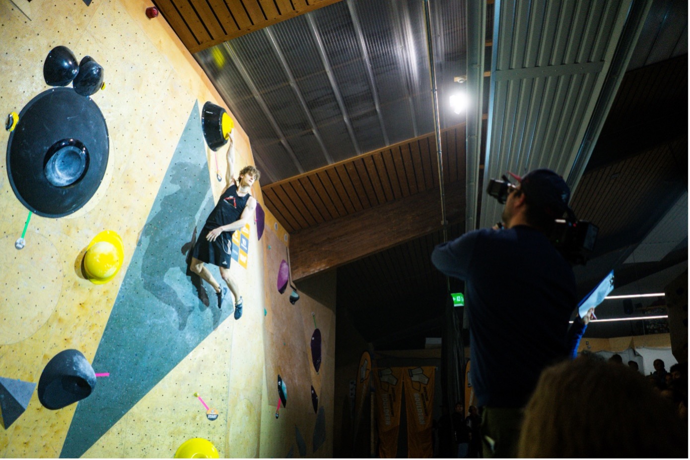 Bei den Herren war die Schwierigkeit der Qualifikationsrunde etwas passender. Dort waren insgesamt sieben Athleten aus Norddeutschland am Start: Marlon Rodzis, Bent von Freier, Tarek Robrahn, Oscar Pongratz, Mattis Eisenkolb, Lasse von Freier und Thorben Perry Bloem. Marlon tat sich schwer mit den Bouldern und beendete den Wettkampf mit zwei Zonen auf Platz 42. Auch Bent fiel der Start nicht leicht, er schaffte es aber sich am letzten Boulder noch ein Top zu sichern und rückte damit auf Platz 37 vor. Besser lief es bei Tarek. Er konnte auch Boulder 1 toppen. Am Ende verpasste er leider dennoch mit Platz 25 wie schon 2022 und 2023 das Halbfinale nur um einen Platz. Dasselbe war Mattis im letzten Jahr passiert. Dieses Jahr ließ er jedoch keine Zweifel aufkommen und qualifizierte sich auf Platz 10 für das Halbfinale. Oscar landete direkt vor ihm auf Platz 9 und sicherte sich damit ebenfalls überzeugend die Qualifikation für die nächste Runde. Ein ganz klares Ausrufezeichen setzten Lasse und Thorben schon zu Beginn des Wettkampfes. Nachdem beide im letzten Jahr ihre erfolgreichste internationale Saison hatten, ging es für die beiden darum ihre Position unter den besten Athleten Deutschlands zu bestätigen und sich für die anstehende Weltcupsaison zu qualifizieren. Und alles sah danach aus, als ob ihnen das Gelingen würde: Lasse kletterte sich direkt auf Platz 3. Für Thorben lief es sogar noch ein bisschen besser: Als Einziger schaffte er es alle Boulder der Runde zu klettern und damit souverän auf Platz 1 in die nächste Runde einzuziehen.