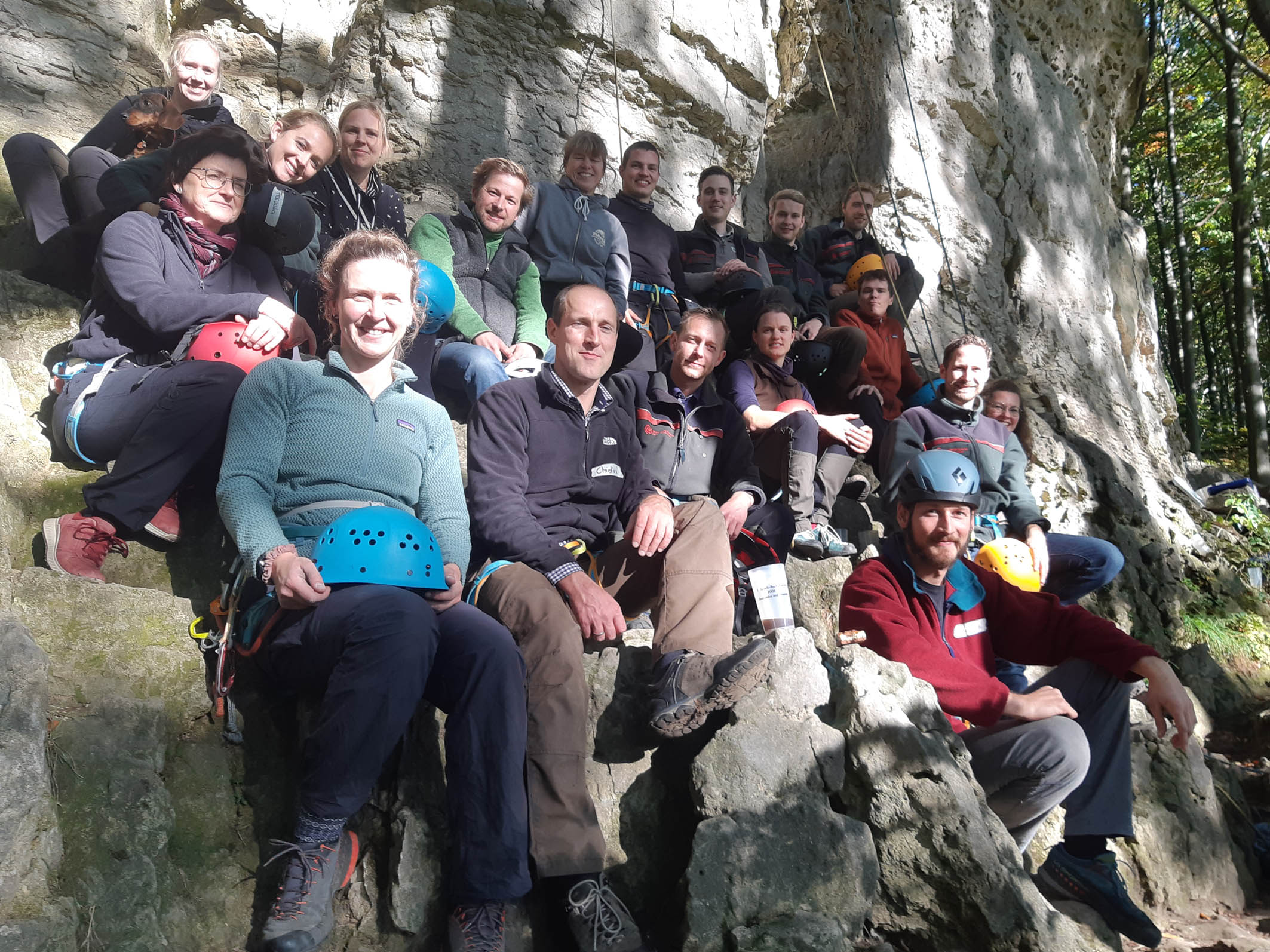 Nach der reichhaltigen Mittagspause ging es mit tatkräftiger Unterstützung von Daniel Dammeier und dem Team des EPZI an die Felsen, um die Kooperation von Naturschutz, Klettern und Landesforsten hautnah zu erleben - eine gelungene Veranstaltung für die Landesforsten und den Klettersport.