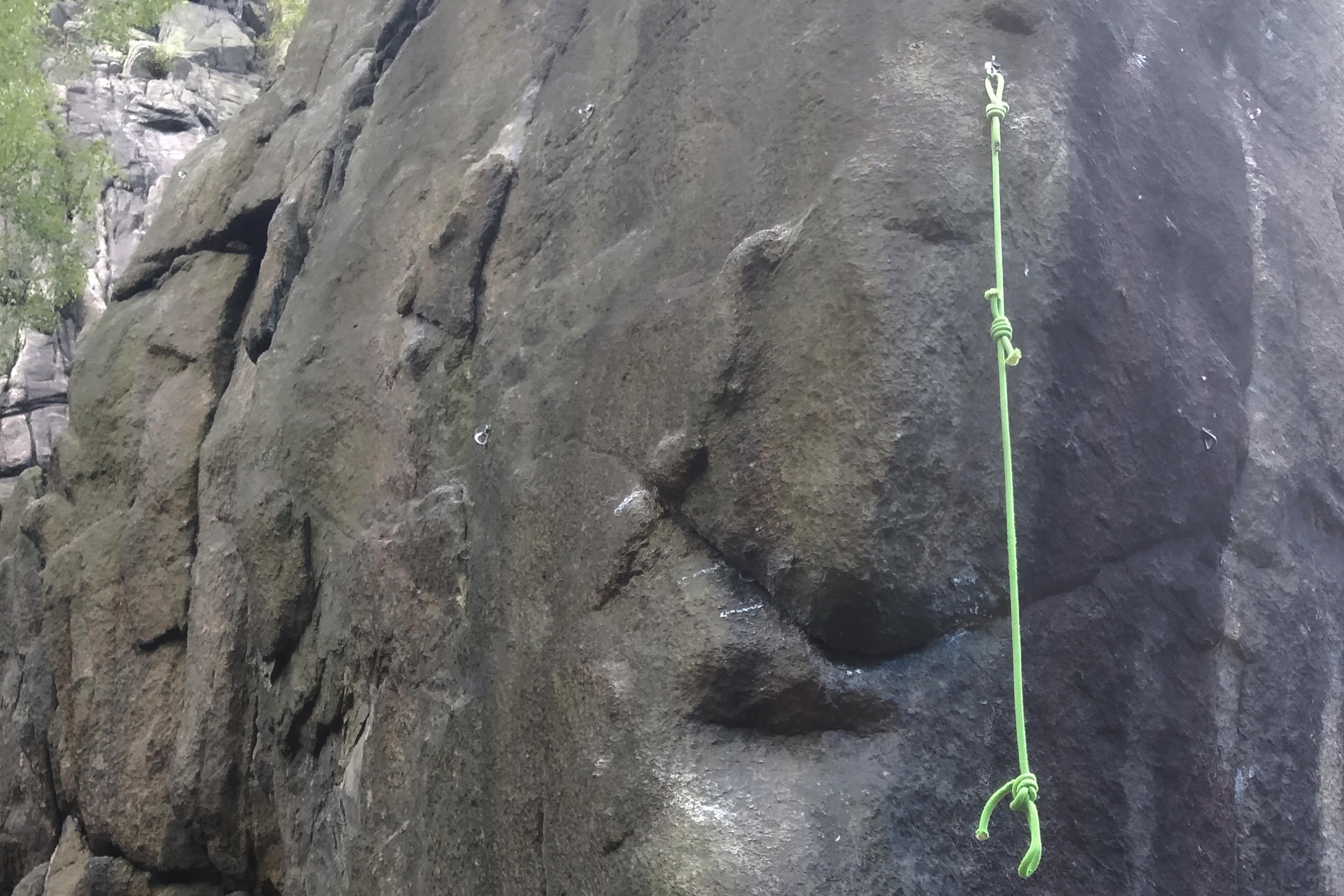 Ich habe das Seil entfernt und der Regen wird das Geschmiere hoffentlich abwaschen. Und wir werden auch alle anderen Installationen an Routen entfernen, die da nichts zu suchen haben. Wenn ich oder Gruppenteilnehmer eine Route nicht schaffen, suche ich eine andere aus. Klettern ist Sport und der Fels kein Freizeitpark.