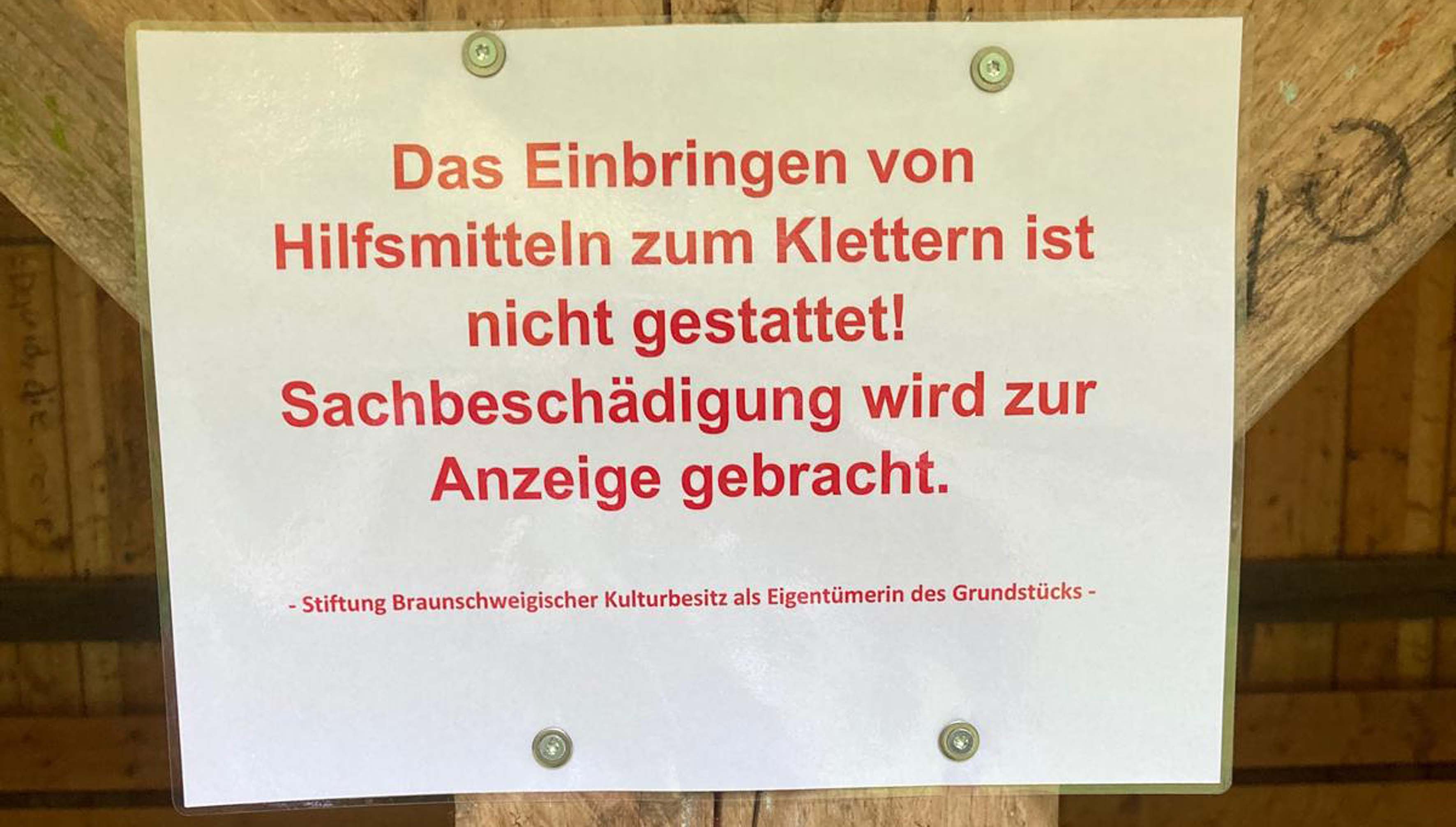 Neben der mutwilligen Zerstörung des Klettergebiets irritiert uns die Tatsache, dass die vielen Kontaktversuche mit der Stiftung Braunschweigischer Kulturbesitz unbeantwortet blieben.