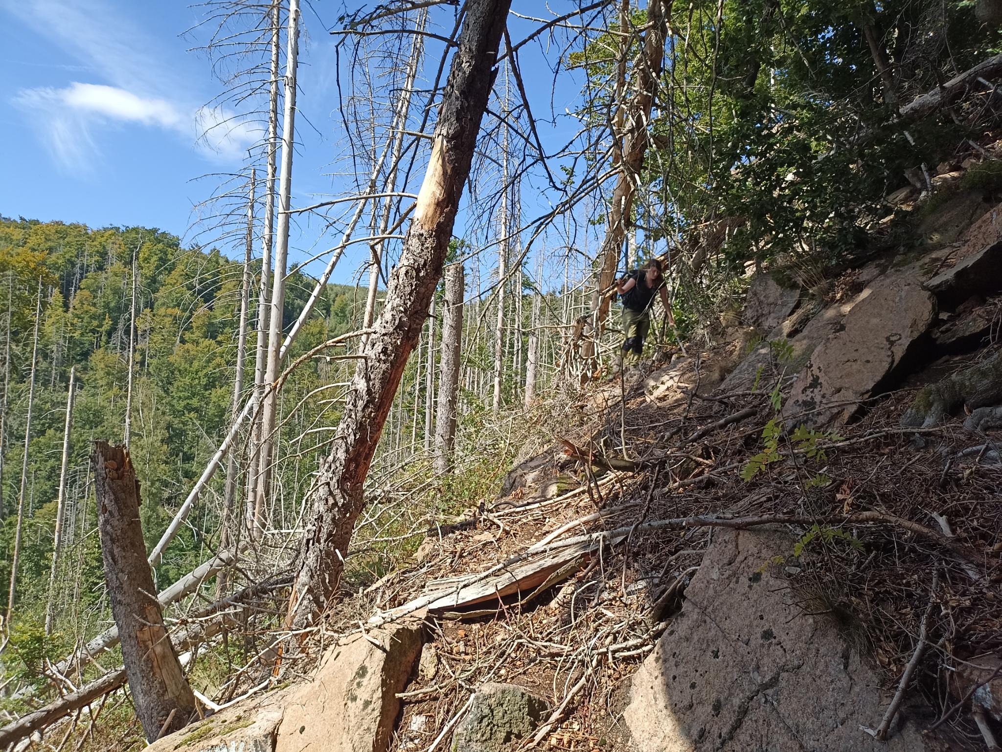 Das klimakrisenbedingte Fichtensterben und wuchernde Brombeeren beeinträchtigen auch im Eckertal bei Rabenklippen und Hausmannklippen die bisherigen Zugänge.